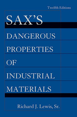 Since its publication in the 1950s, this important resource is considered the bible by those who need to evaluate the potential hazard of substances used in commerce. Now in its twelfth edition, Sax′s Dangerous Properties provides extensive data on approximately 28,000 substances, with the addition of nearly 2,400 new substances. Each entry includes a DPIM code, hazard rating, entry name, CAS number, DOT number, molecular formula, molecular weight, line structural formula, description of material and physical properties, and synonyms. The book also contains Immediately Dangerous to Life or Health (IDLH) levels for approximately 1,000 chemicals.