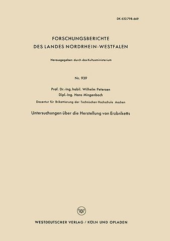 Während man die Stückigmachung von Feinsterzen, insbesondere von Eisen erzen bis zum Jahre 1910 etwa in erster Linie durch die Brikettierung vornahm, ging man in jener Zeit in zunehmendem Maße dazu über, die Stückigmachung durch Sinterung der feinen Erze vorzunehmen. Hinzu kam in den letzten Jahren für gewisse Erze das Pelletisieren. In jüngster Zeit sind jedoch die Sinterkosten (sie werden 1956 bei einer Ruhrhütte mit 18.- DM/t angegeben) erheblich angestiegen. Das führte dazu, daß die Erzbrikettierung heute auch wieder wirtschaftlich an Bedeutung ge winnt. Die Anwendung der Brikettierung ist in erster Linie bei solchen feinkörnigen Erzen vorzunehmen, bei denen die thermische Vorbehandlung durch Sinterung keinen ausschlaggebenden verhüttungs technischen Vorteil ergibt. Dies trifft z.B. eindeutig für Gichtstaub zu. Die Vorteile der Brikettierung dieser Stoffe sind neben den geringeren Betriebs- und Investitionskosten gegenüber dem Sintern auch in techni schen und betrieblichen Gründen zu suchen. Die Brikettierung des Gicht staubes kann unmittelbar neben der Staubabscheidung erfolgen. Dadurch werden Förderung und Lagerung erspart. Außerdem wird die fühlbare Wärme für die Verfestigung des Briketts ausgenutzt. Bei Verwendung von Sulfit ablauge als Bindemittel erübrigt sich dadurch ein Kanalofen zur Nach verfestigung der Preßlinge. Der im Gichtstaub bis zu 10 % vorhandene Kohlenstoff bleibt für die Verhüttung erhalten. Außerdem kommt die Brikettierung für alle jene Feinsterze in Frage, die nur geringe Stoffe enthalten, die durch das Sintern ausgetrieben werden. Hierzu gehören der Magnetit, Hämatit und der Rostspat.
