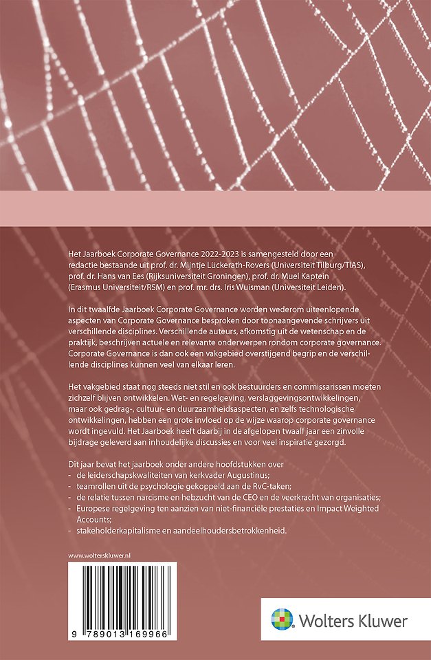 Verschillende auteurs, afkomstig uit de wetenschap en de praktijk, verkennen actuele en relevante onderwerpen op het terrein van corporate governance. In deze 11e editie komen onder meer de volgende onderwerpen aan bod: