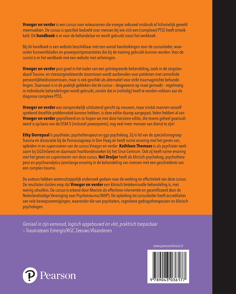 Vroeger en verder is een cursus voor volwassenen die vroeger seksueel misbruik of lichamelijk geweld meemaakten. De cursus is specifiek bedoeld voor mensen bij wie zich een (complexe) PTSS heeft ontwikkeld. Dit handboek is er voor de behandelaar en wordt gebruikt naast het werkboek.