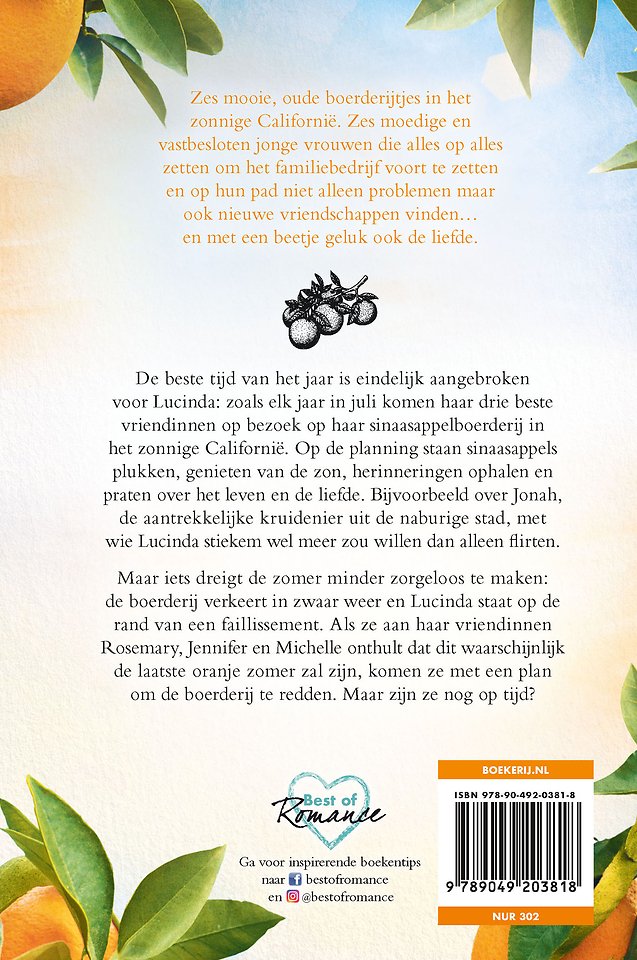 De beste tijd van het jaar is eindelijk aangebroken voor Lucinda: in juli bezoeken haar drie beste vriendinnen haar altijd op haar geliefde sinaasappelboerderij in het zonnige Californië. Het plan: sinaasappels plukken en kletsen over de liefde en over Jonah, de aantrekkelijke kruidenier uit het naburige stadje. Wat haar vriendinnen niet weten is dat de boerderij nauwelijks winst maakt en dat Lucinda failliet dreigt te gaan. Ze moeten een plan bedenken om de boerderij te redden.