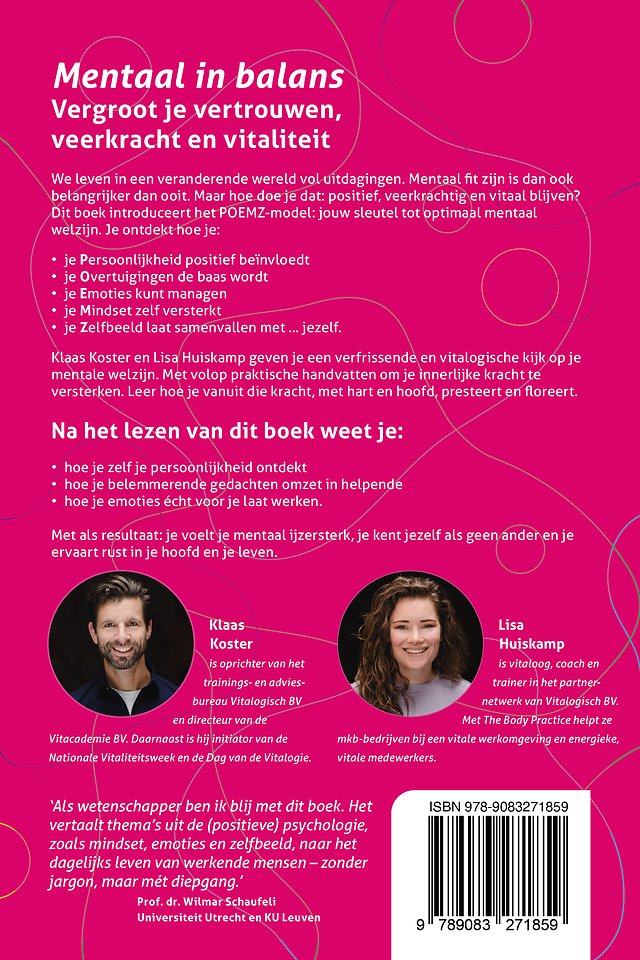 Klaas Koster en Lisa Huiskamp geven je een verfrissende en vitalogische kijk op je mentale welzijn. Met volop praktische handvatten om je innerlijke kracht te versterken. Leer hoe je vanuit die kracht, met hart en hoofd, presteert en floreert.