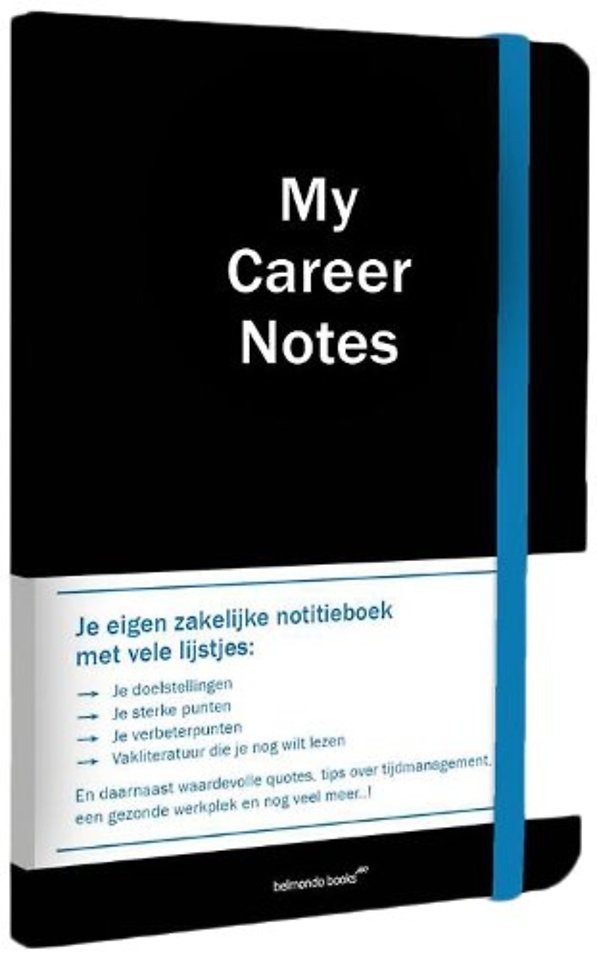 'My Career Notes' is een zakelijk notitieboek met vele voorgedrukte lijstjes om zelf in te vullen, bijvoorbeeld 'Mijn sterke punten', 'Cursussen en opleidingen die ik nog wil volgen' en 'Must read managementboeken'. Hierdoor wordt zich bewuster van uw werkzaamheden en bereikt u meer. Naast uw eigen lijstjes om in te vullen vindt u waardevolle quotes, een interview met uzelf, een kleine test om uw huidige werk te beoordelen en ook vele tips over onder andere (time)management, lichaamstaal, mindmappen, onderhandelen, presenteren en social media in uw carrière gebruiken.
