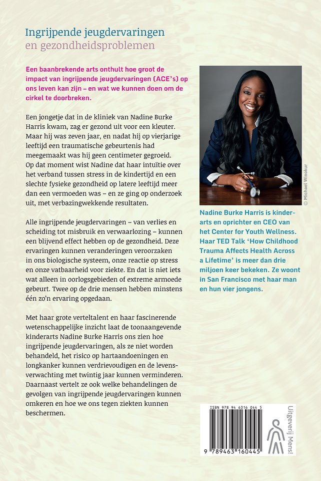 Met haar grote verteltalent en haar fascinerende wetenschappelijke inzicht laat de toonaangevende kinderarts Nadine Burke Harris ons zien hoe ingrijpende jeugdervaringen, als ze niet worden behandeld, het risico op hartaandoeningen en longkanker kunnen verdrievoudigen en de levensverwachting met twintig jaar kunnen verminderen. Daarnaast vertelt ze ook welke behandelingen de gevolgen van ingrijpende jeugdervaringen kunnen omkeren en hoe we ons tegen ziekten kunnen beschermen.