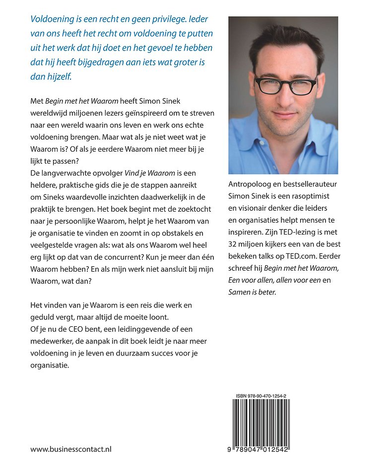 Het boek beantwoordt ook veelgestelde vragen als: Wat als ons Waarom wel heel erg lijkt op dat van de concurrent? Kun je meer dan één Waarom hebben? En als mijn werk niet aansluit bij mijn Waarom, wat dan? Of je nu een nieuwkomer bent of de ceo, een leidinggevende of een medewerker, de aanpak in dit boek leidt je naar meer voldoening in je leven en duurzaam succes voor je organisatie.