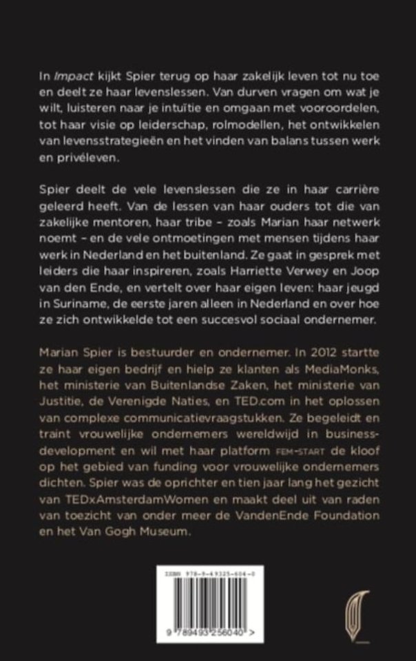 In dit boek kijkt Spier terug op haar zakelijk leven tot nu toe en deelt ze vele levenslessen die ze leerde. Van durven vragen om wat je wilt, luisteren naar je intuïtie en omgaan met vooroordelen, tot haar visie op leiderschap, rolmodellen, het ontwikkelen van ‘life strategies’ en het vinden van balans tussen werk en privéleven. Ze was de oprichter en tien jaar lang het gezicht van TedxAmsterdamWomen en maakt deel uit van raden van toezicht van onder meer de Joop van den Ende Foundation en het Van Gogh Museum.